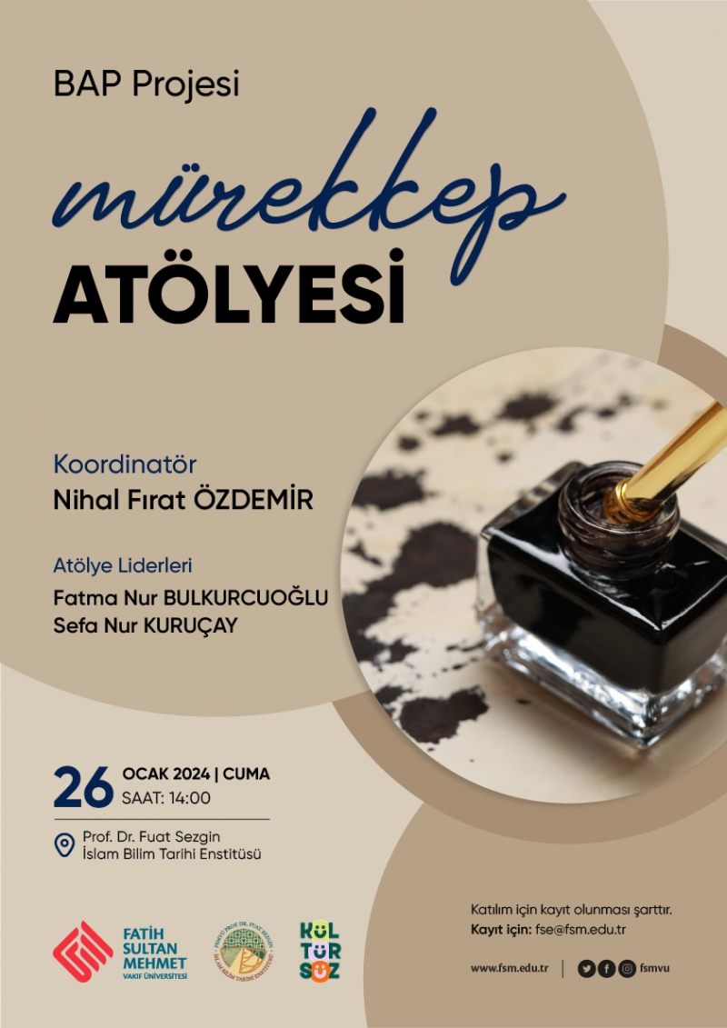 Prof. Dr. Fuat Sezgin İslam Bilim Tarihi Enstitüsü, BAP Projesi dahilinde "Mürekkep Atölyesi" düzenliyor.