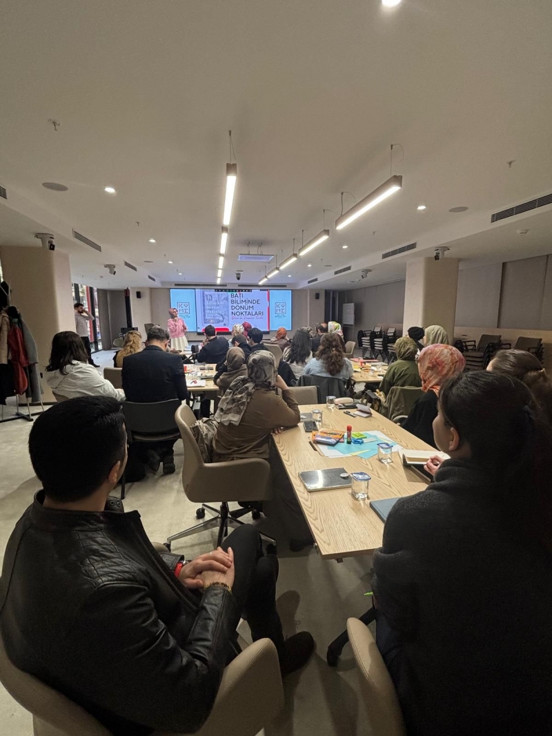 Etkinlikte Cansu Demirbağ “Batı Biliminde Dönüm Noktaları” adlı eseri tahlil ederek katılımcılarla değerlendirmelerde bulundu. Programa öğrencilerin yanı sıra akademisyenler de katıldı.