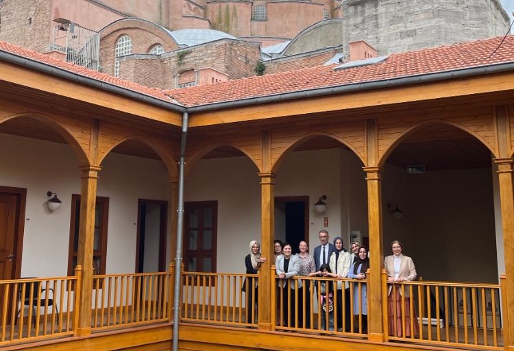 Misafirlerimize Prof. Dr. Fuat Sezgin İslam Bilim Tarihi Enstitüsü hakkında bilgilendirmede bulunuldu ve lisansüstü öğrencilerin eğitim ve öğretim gördüğü Fatih Sultan Mehmet Vakıf Üniversitesi Ayasofya Yerleşkesi tanıtıldı.