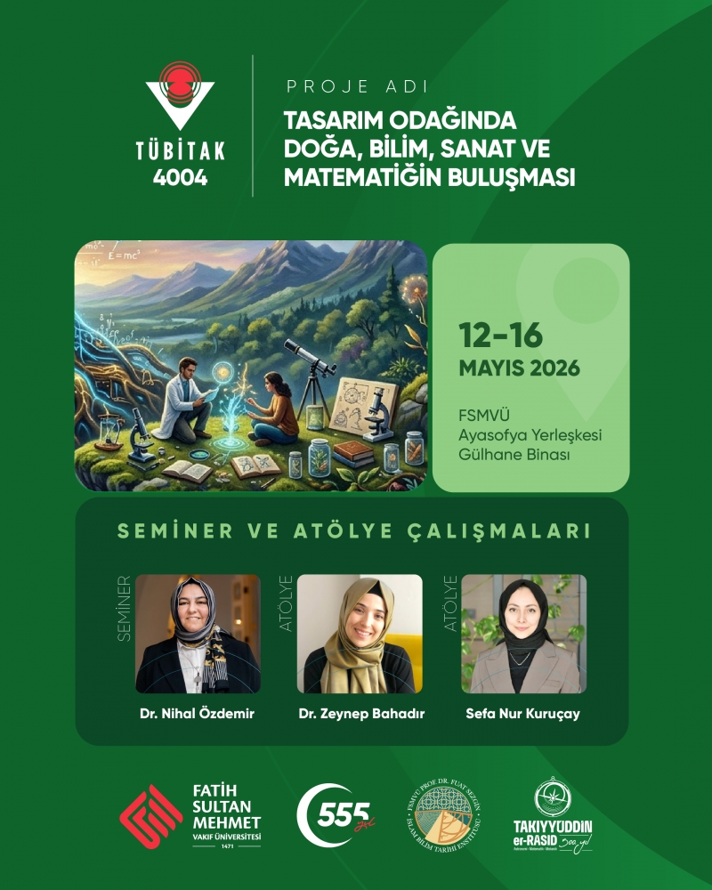 İstanbul Fuat Sezgin Bilim ve Sanat Merkezi yürütücülüğünde ve Fatih Sultan Mehmet Vakıf Üniversitesi Prof. Dr. Fuat Sezgin İslam Bilim Tarihi Enstitüsü ortaklığında, TÜBİTAK 4004 - Doğa Eğitimi ve Bilim Okulları Destekleme Programı kapsamında hazırlanan “Tasarım Odağında Doğa, Bilim, Sanat ve Matematiğin Buluşması” projesi desteklenmeye hak kazanmıştır.